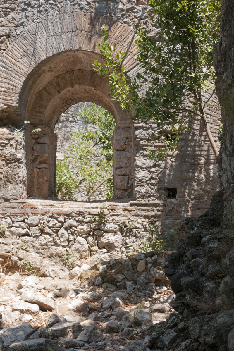 Развалины удивительно живописны! Город утопает в зелени: лавр (запасайте для супа!), пинии, цветущие рододендроны... А в речке - белоснежные гуси и черепахи :)