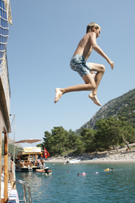 Основных маршрутов два. Можно поплыть налево, в сторону Олимпоса, по красивым бухтам и гротам. Моя любимая остановка на этом маршруте - бухта Аквариум, там очень красиво плавать и нырять вокруг торчащей из воды скалы. И очень красивая бухта Садзак.