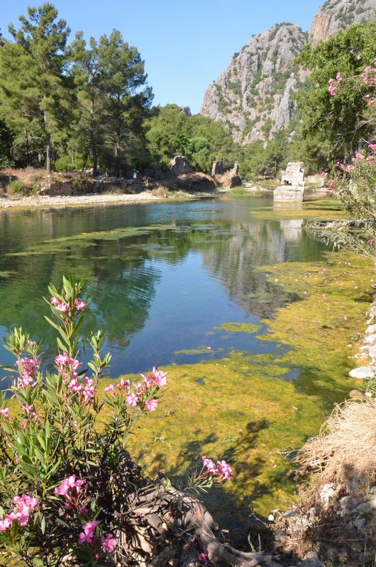 В Чиралы оживают легенды античности. В изумительно красивом месте - по берегам горной речки, протекающей в ущелье, расположены развалины древнеликийского города Олимпоса.