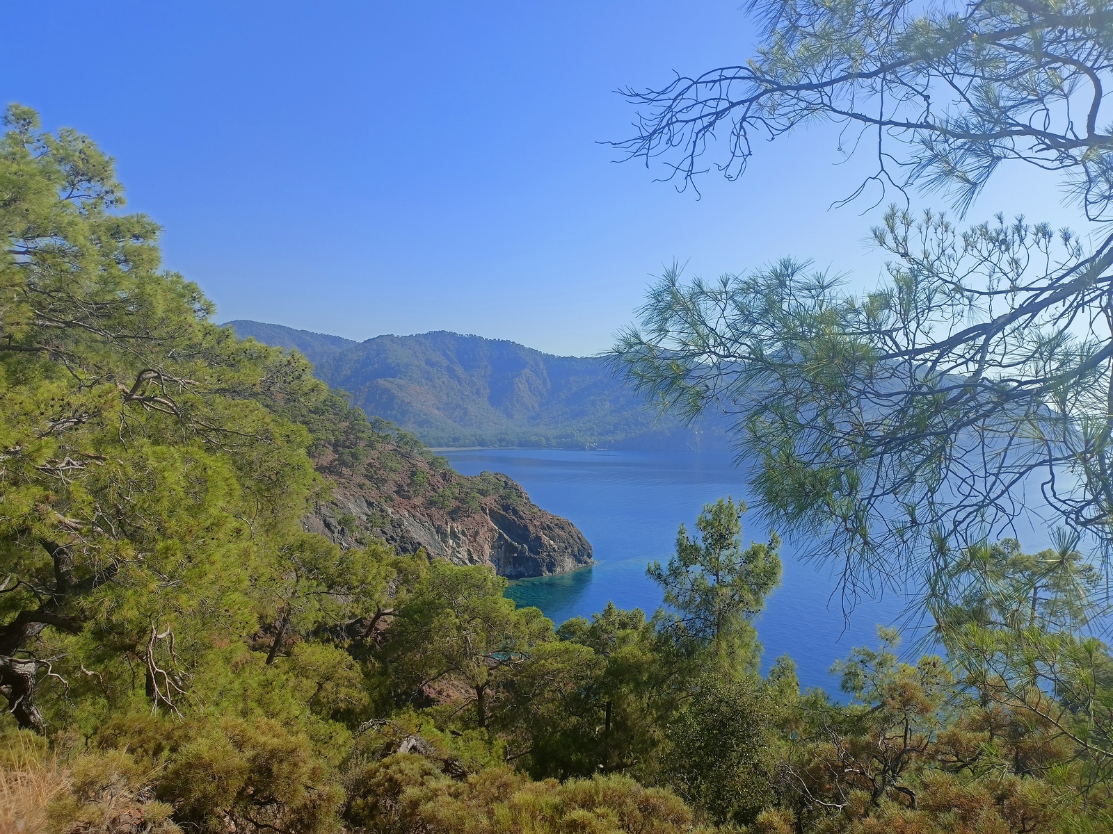 Еще один интересный маршрут - по ликийской тропе. Можно подняться по ней совсем немного, до первого перевала - это несложно, не сложнее, чем до Химеры. А можно пройти по ней дальше, посмотреть несколько живописных бухт.