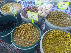 Один день в неделю, по вторникам, бывает ярмарка у моста. На ярмарке можно недорого купить оливки разных сортов на развес, очень недорогое, но хорошее домашнее оливковое масло (я лично всегда беру с собой в Москву оливки и масло), разные местные сыры - они очень интересные, многие непохожи на наши - пробуйте! Конечно же много овощей и фруктов, они подешевле, чем в магазинах Чиралы, и бывают интересные овощи-фрукты. которых в магазинах нет. Есть разнообразные восточные сладости на развес и в коробках. Прекрасные, очень вкусные орехи, мы фисташки тоже всегда берем с собой. Есть и сувениры и даже одежда. Одним словом, очень рекомендую!