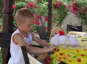 На завтрак специально для нас будут варить молочные кашки. Еще на завтрак - прекрасный натуральный йогурт, омлет или вареные яйца, сыр, свежие овощи, оливки, домашнее варенье, кекс.