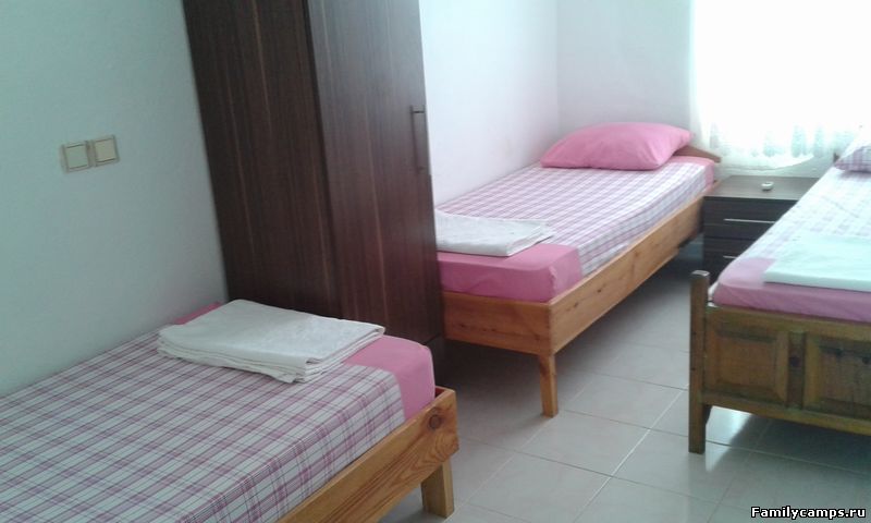 Половина номеров расположена в небольших домах. Есть двухместные, трехместные, четырехместные номера.