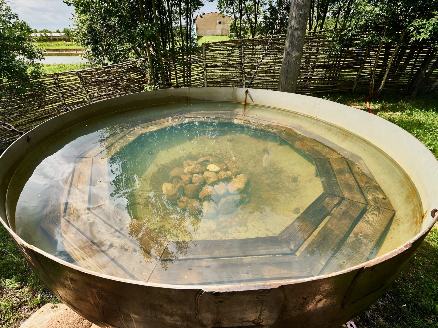 В доме есть маленькая сауна и огромный чан, в котором будет очень здорово попариться!