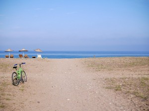 Пляж в основном песчаный, но ближайшая к морю полоса и заход в воду - по камням.