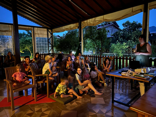 Взрослых же ждёт вокальный кружок, в котором Ксения, профессиональня певица, будет учить работать с голосом, и мы выучим несколько песен, чтобы петь по голосам.