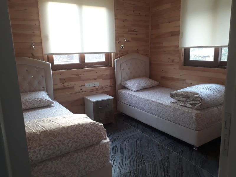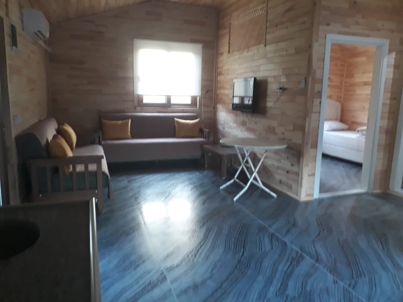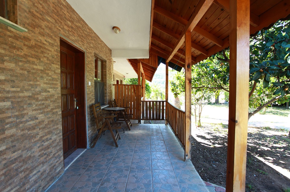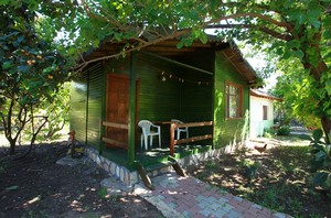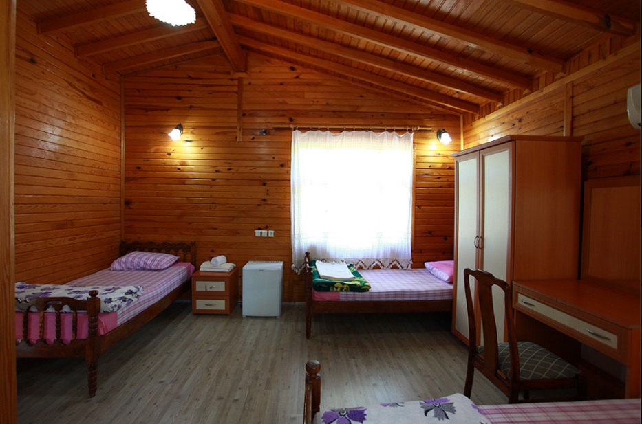 Часть номеров расположена в отдельностоящих деревянных домиках - бунгало. Есть трехместные, четырехместные домики.