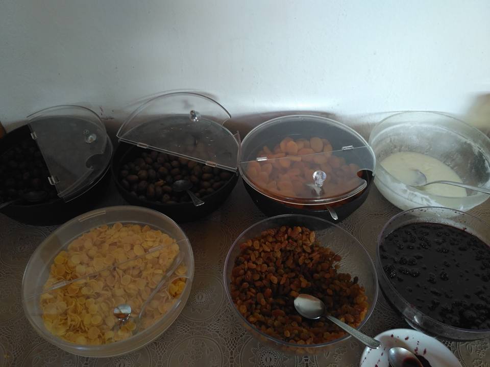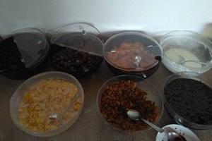 На завтрак специально для нас будут варить молочные и безмолочные кашки. Еще на завтрак - прекрасный натуральный йогурт, вареные яйца, омлет-яичница по запросу, сыр разных видов, свежие овощи, оливки, домашнее варенье, мед, пончики.