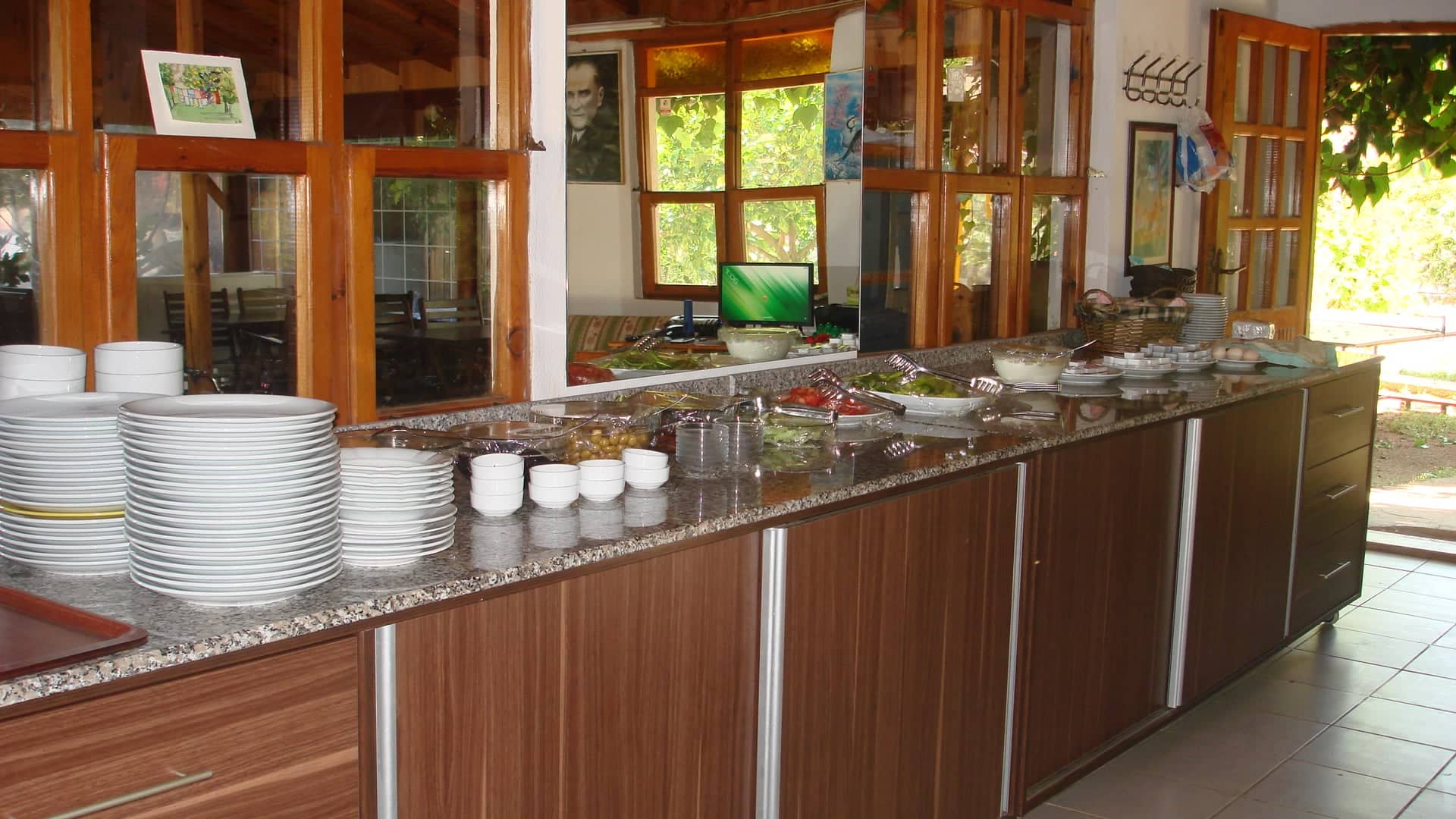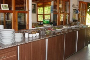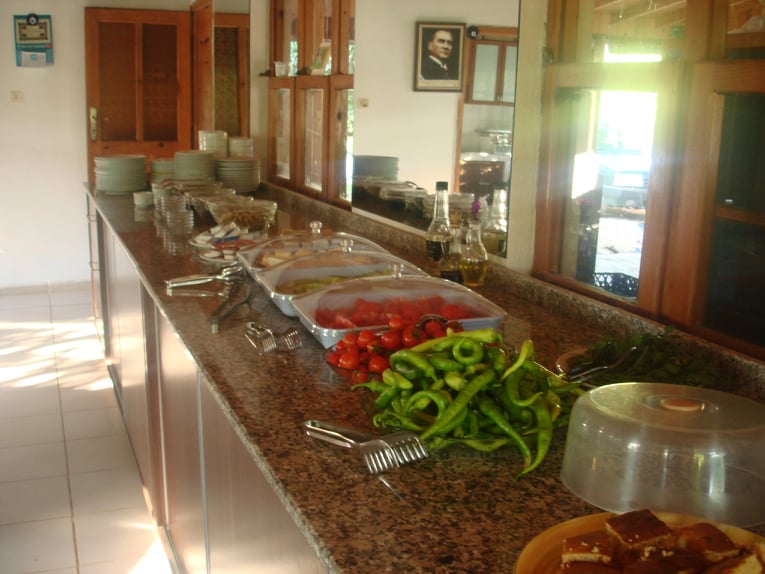 В нашем отеле, как и практически везде в Чиралы, подают домашнюю турецкую кухню, в которой очень много самых разнообразных овощей, много блюд в оливковом масле, в томатном соусе (не кетчуп :)). Как правило, турецкая кухня очень нравится всем, хотя кому-то, конечно, она непривычна. Еда качественная, натуральная, вкусная, используются хорошие качественные продукты.