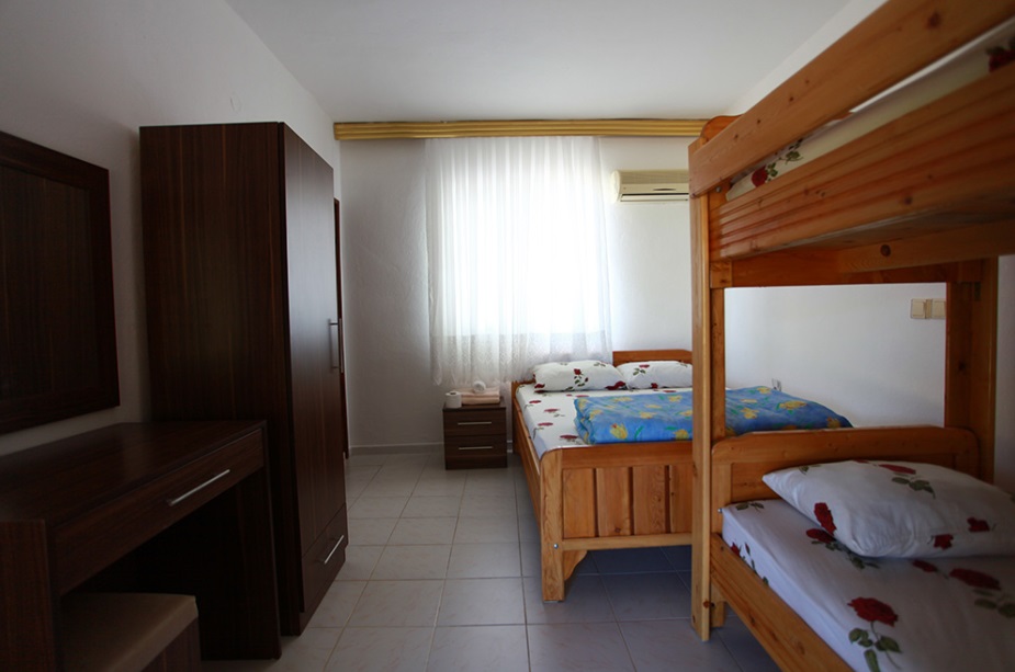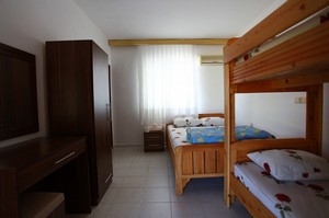 Половина номеров расположена в небольших домах. Есть двухместные, трехместные, четырехместные номера.
