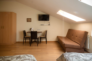 В отеле уютные номера разные по вместимости и уровню комфорта. От маленьких двухместных до 2-3 комнатных люксов. В каждом номере санузел с душем. Телевизор, чайник и стаканы есть в каждом номере. Холодильники не во всех номерах, но если нет в номере, то есть большой общий холодильник на этаже. В номерах хорошая качественная мебель и сантехника, удобные матрасы и подушки.