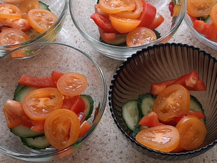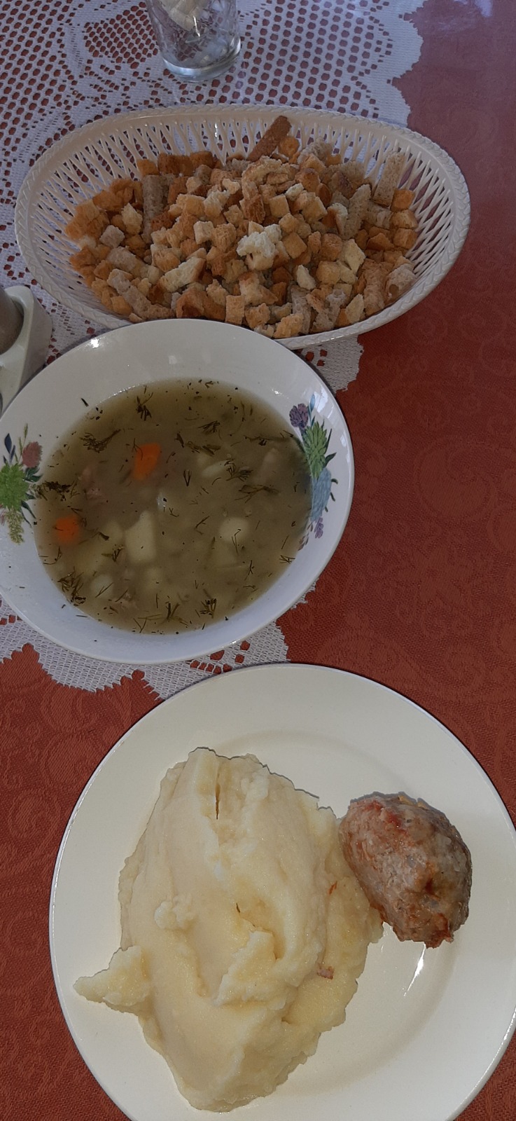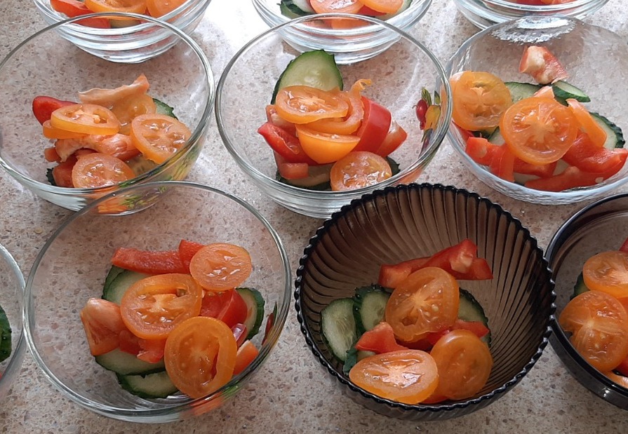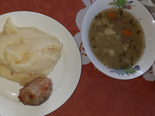 Питание простое, достаточно вкусное. Картошка, морковь, свекла и зелень - со своего огорода. Другие овощи и фрукты - свои по сезону, что успеет созреть.