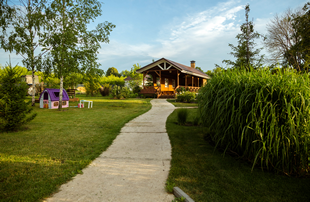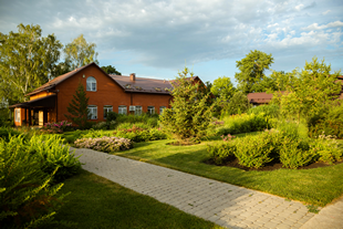 Мы будем жить в очень красивом отеле "Надежда" в Тульской области, деревне Орловка. У отеля очень большая и очень ухоженная территория, много цветов, зеленых лужаек, тенистых деревьев, беседок. Есть детская площадка, песочница, качели. Есть также детская комната в доме.