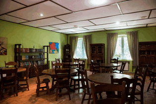 Отель красиво и со вкусом отделан. В главном здании, где будут жить большинство участников лагеря, есть несколько уютных атмосферных залов для наших активностей, игровая комната, красивая светлая столовая, бар. В баре не продаются спиртные напитки - только пиво, но можно уютно посидеть после детского отбоя взрослой компанией за чаем/вином, вино можно приносить с собой - бокалы дадут :)