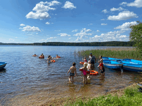 Наш лагерь пройдет в красивейшем и уединенном месте Псковской области, недалеко от г.Себеж (560км от Москвы, от Питера примерно столько же). Тут бескрайние просторы, величественные сосны и живописное озеро, чистейший воздух и ни души вокруг :) И большой уютный дом, построенный семьей, всецело разделяющей наши взгляды на жизнь, специально для семейного отдыха :) И огромная территория с лазалками и качелями всевозможными, песочницей-каравеллой, кроликами птичьим двором. Это – "Семейный дом Кораблино"!
