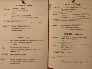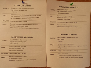 - двое взрослых и двое детей 4-8 лет и 9-12 лет в номере с удобствами в большом доме, питание 8 полных дней (с утра 22 августа до вечера 29 августа), стоимость программы по скидкой 15%: 21600+(1600*2+1000+800)*8+(32000-15%)=90500руб;