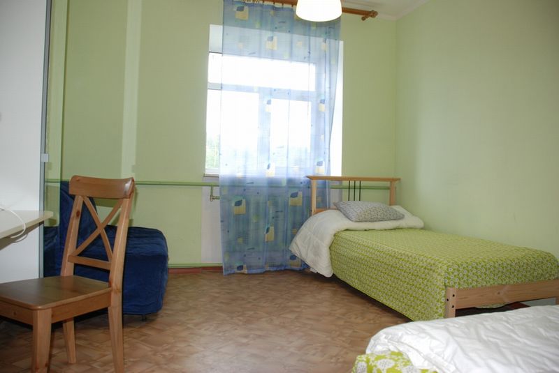 Номера в основном четырех- и пятиместные, есть два двухместных. В номере, как правило, двуспальная кровать и двухэтажная кровать.